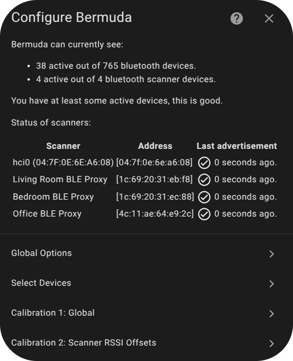 - In the Bermuda BLE Trilateration integration settings, use Select Devices to choose which devices you want to track.