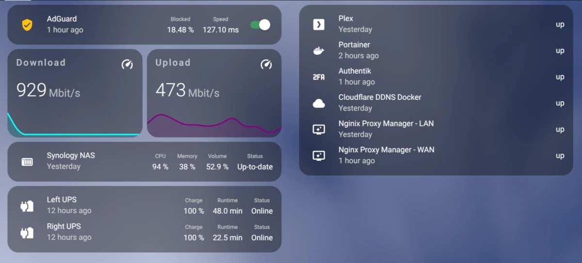 Home Assistant dashboards aren’t just great for controlling your smart home—they’re also perfect for monitoring your homelab. When I set up my Raspberry Pi Touchscreen Dashboard at my desk, I wanted a page that displayed real-time network and server metrics—including internet speed test results. That way, when I hear my wife yell down to my office, “Why isn’t the internet working?!” I can quickly glance over and see exactly what’s going on with our services and connection.