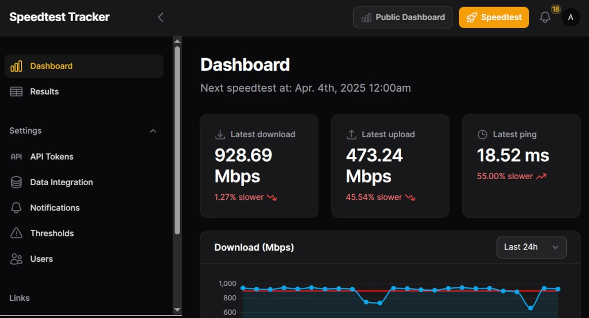 Speed Test Tracker is a self-hosted internet speed monitoring tool that runs in a Docker container. It offers: