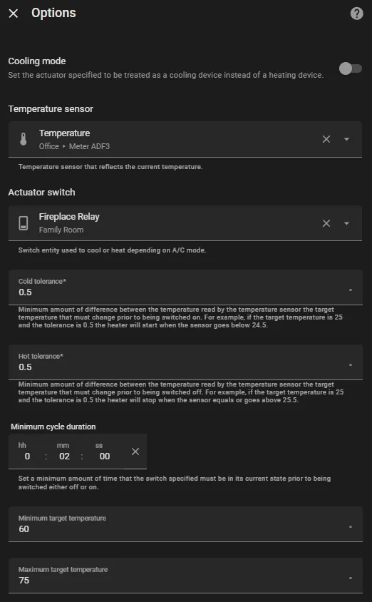To fix that, I created two Home Assistant generic thermostats using the built-in helper tools. One thermostat uses the office temperature sensor for my work days, so I can stay comfortable at my desk without overheating the rest of the basement. The other uses the family room temperature sensor for evenings and weekends when I’m playing with the girls or watching TV.