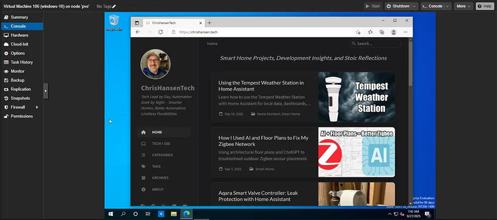 I’ve worked from home since 2017 and for years I relied on an HP workstation in my office to run all my development VMs in Hyper-V on Windows 10. It did the job, but it couldn’t upgrade to Windows 11 because of the TPM 2 requirement, and the constant fan noise plus spinning disks made it less than ideal to share an office with every day. When we moved into our house, I realized I could finally get the noisy machine out of my office. I reloaded it with Proxmox, converted the Hyper-V VMs over, and moved it into the storage room with the rest of my networking gear. Now I have always-on VMs I can reach from my work laptop over Remote Desktop.