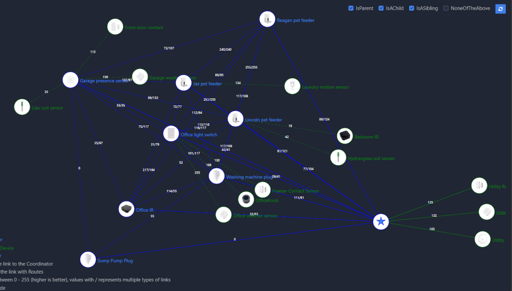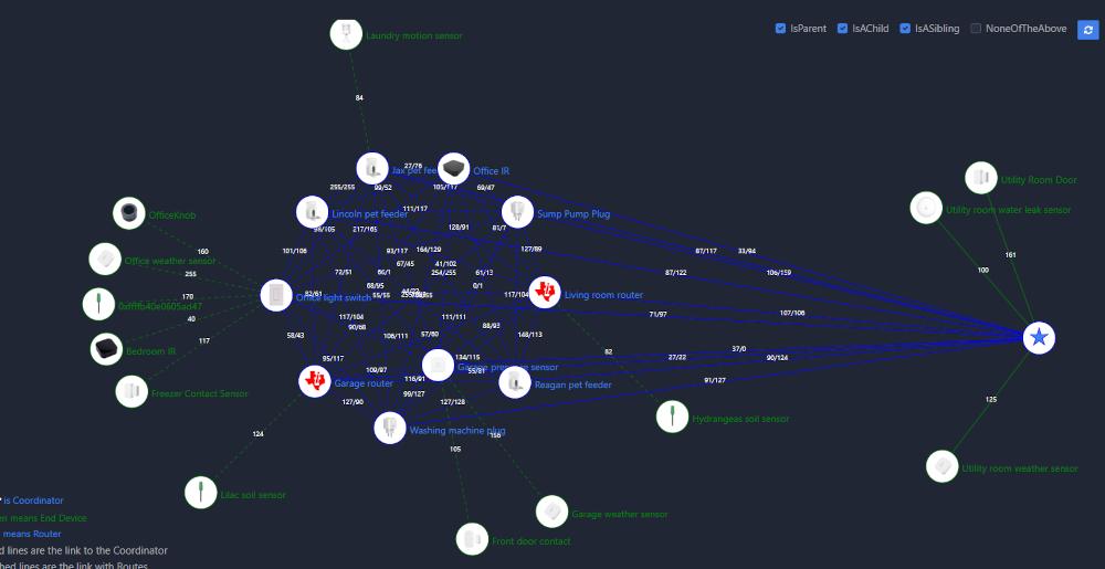 The nice part was that my pet feeders were already solid routers, so the recommendation was to leave those alone. Just adding the TV stand and garage routers should stabilize the outdoor sensors and clean up dropouts on the main floor.